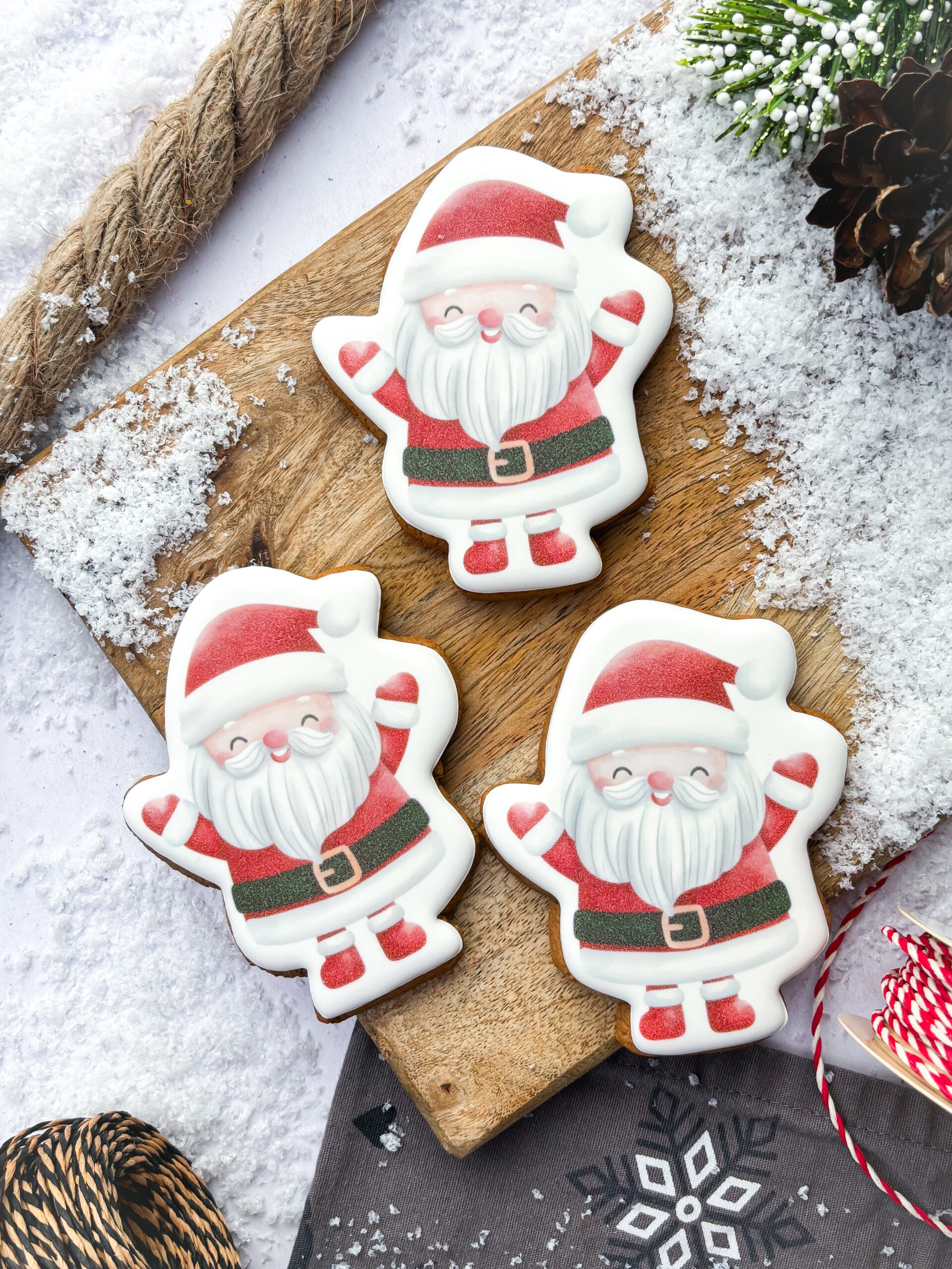 Świąteczny pierniczek Mikołaj – elegancki upominek dla klientów i partnerów. Estetyczne opakowanie i indywidualny jadalny nadruk uroczego świętego Mikołaja.