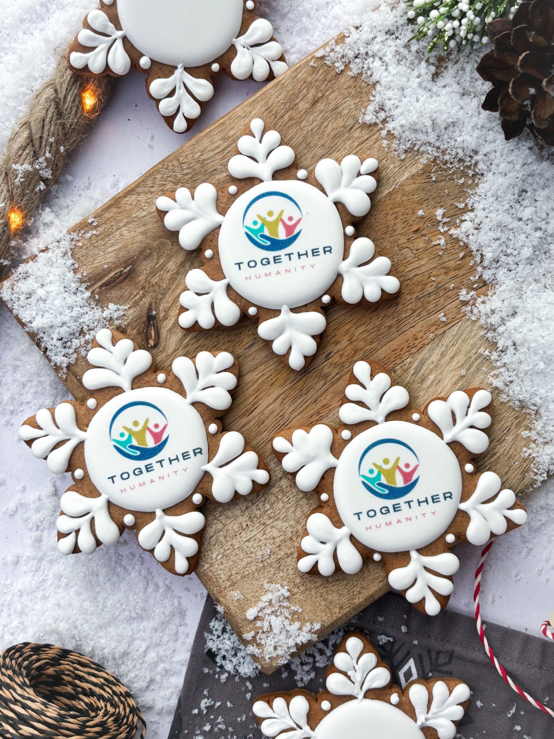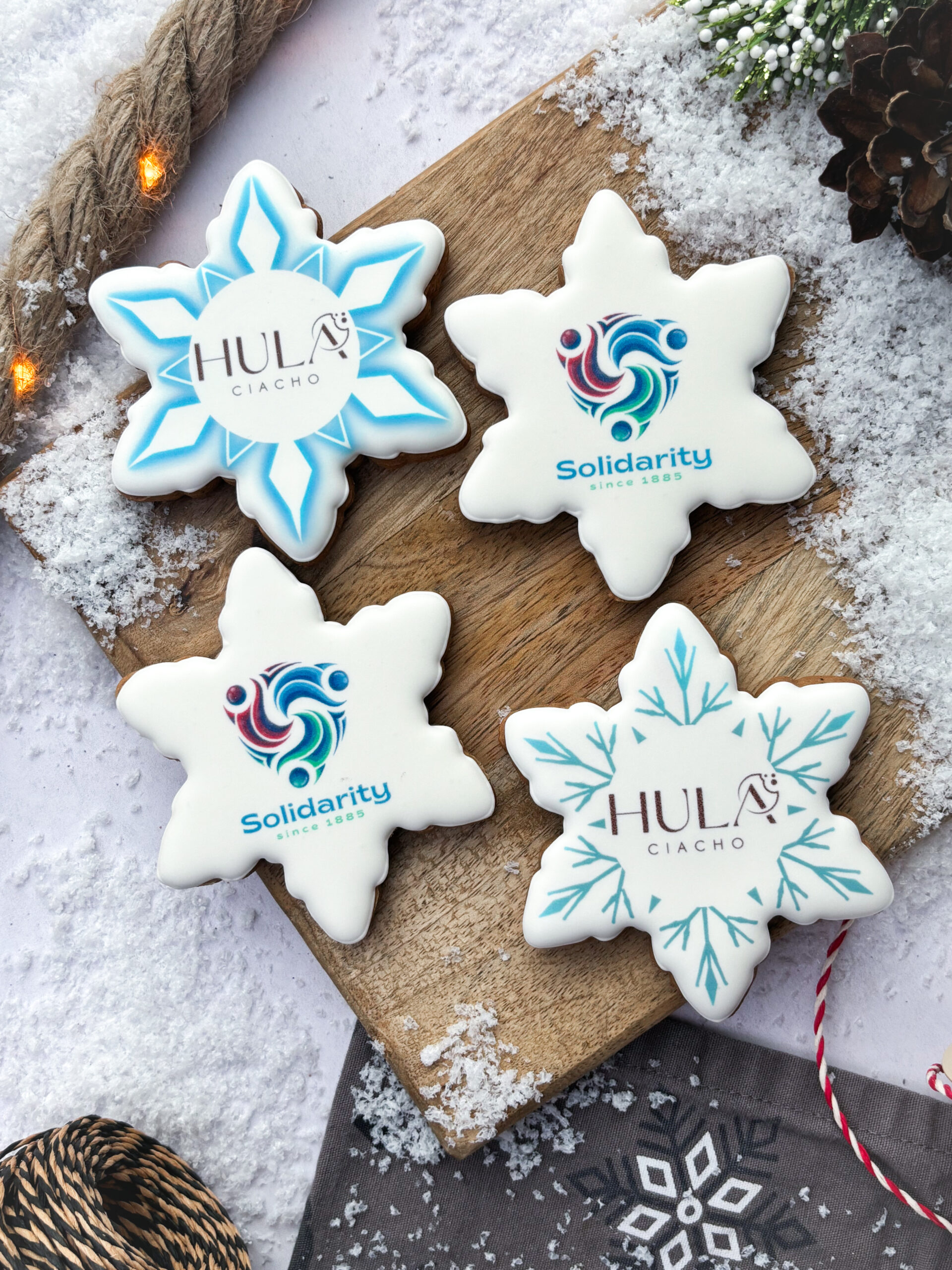 Śnieżynka z lukrem z logo – zimowy piernik firmowy